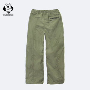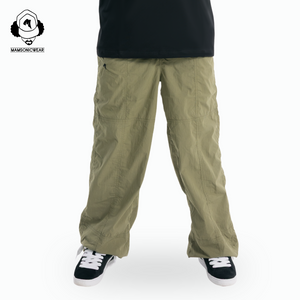 The Embroidered Logo Draped Crinkle-Cotton Cargo Pants, crafted from a designer-favored cotton crinkle fabric renowned for its lightweight drape. Features a straight silhouette with pronounced center leg seams that reinforce structure for enhanced durability while visually elongating and straightening the leg line. Functional details include generously deep snap-closure slanted front pockets—accented by 'M' embroidery beneath the right pocket—along with a single back right flap pocket secured by a snap closure and adorned with refined brand logo embroidery on the flap; the waistband is equipped with two custom premium metal pig nose buckles for easily adjustable, secure sizing that stays firmly in place, while both cuffs incorporate hidden yet high-quality lightweight pig nose buckles for discreet ankle-width adjustment, completing the utilitarian yet polished design.