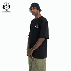 The Personage-icon T-shirt is crafted from 220g high-count cotton fabric, which combines skin-friendly breathability, a silky-smooth texture, and excellent drape into one versatile material. Featuring an essential, versatile black base, it showcases the brand's iconic character logo meticulously placed on the left chest with exquisite craftsmanship and clean edges. Paired with its relaxed unisex cut, this piece stands as an indispensable, foundational wardrobe staple.